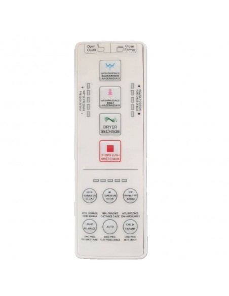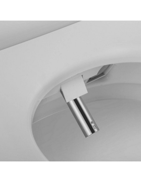 - Double lavage anal et féminin : en fonction de la fonction choisie grâce à la télécommande ou via l'application, la douchette adapte sa position pour un lavage postérieur ou féminin. La position de la buse se règle également via la télécommande. Les positions de la douchette pour chaque mode de lavage sont sauvegardées et également modifiable au besoin avec la télécommande ou l'application. Une seconde pression sur le bouton de lavage lancera une fonction de massage par jets oscillants sur une zone de lavage plus large. Vous pouvez choisir d'arrêter le lavage grâce au bouton "Arrêt" à tout moment ou attendre l'arrêt automatique au bout de 2 minutes.